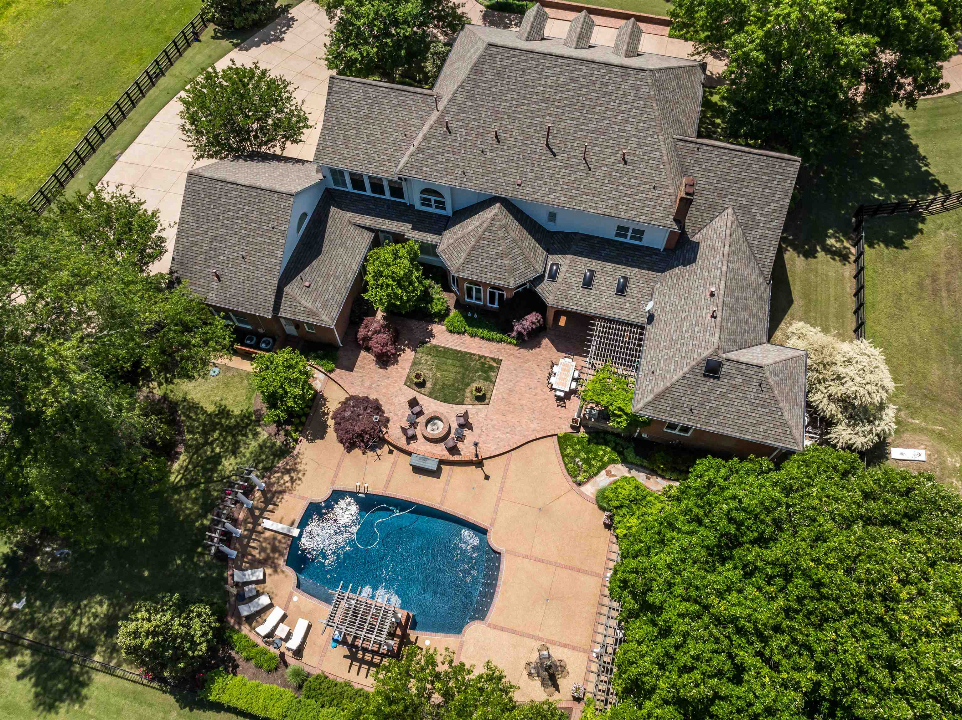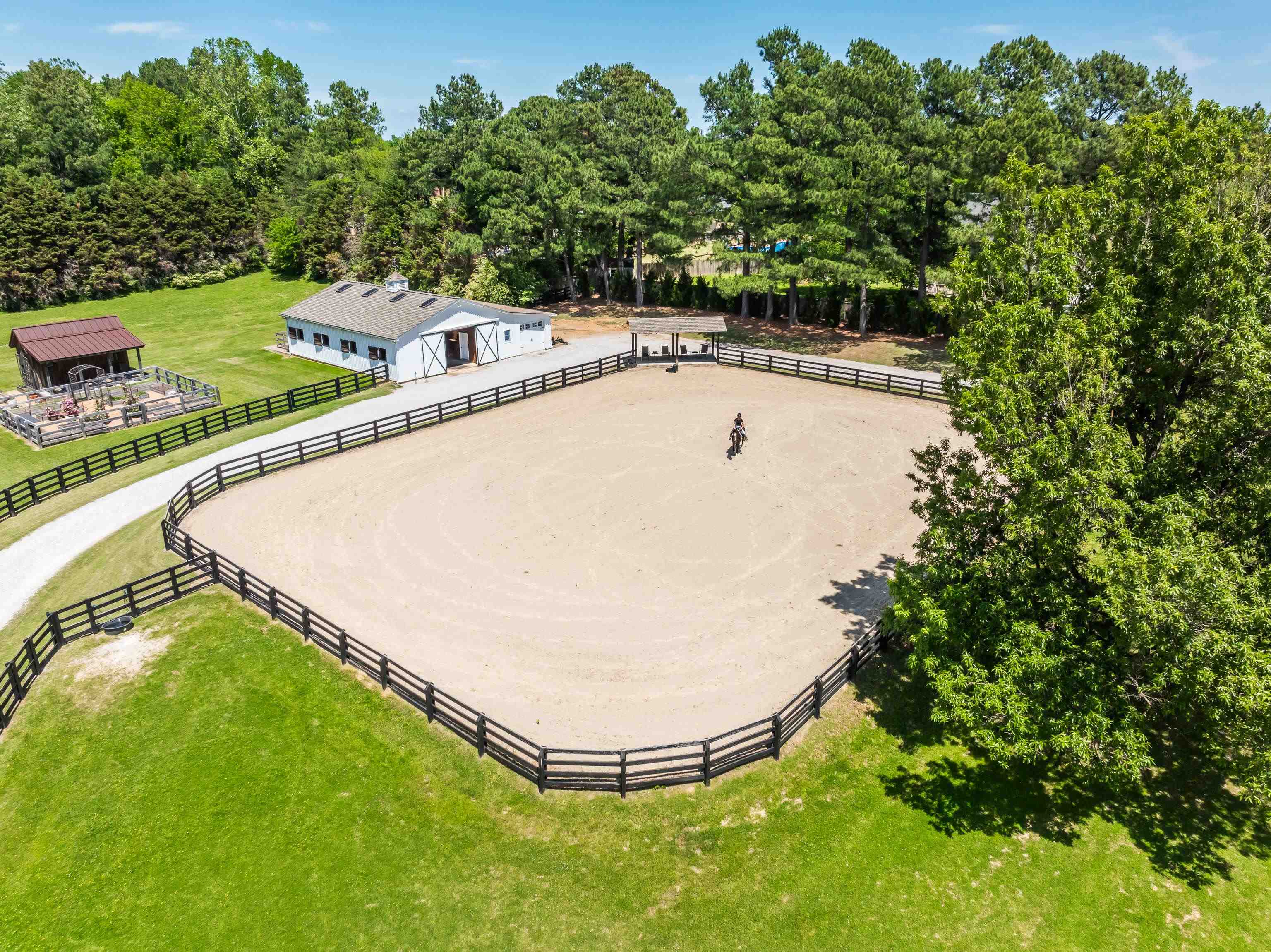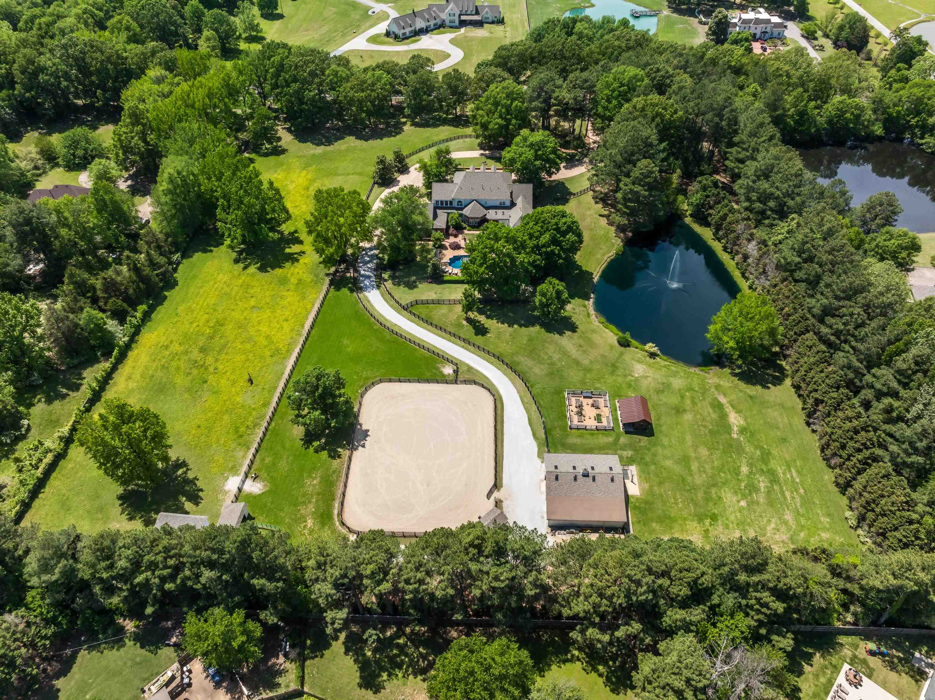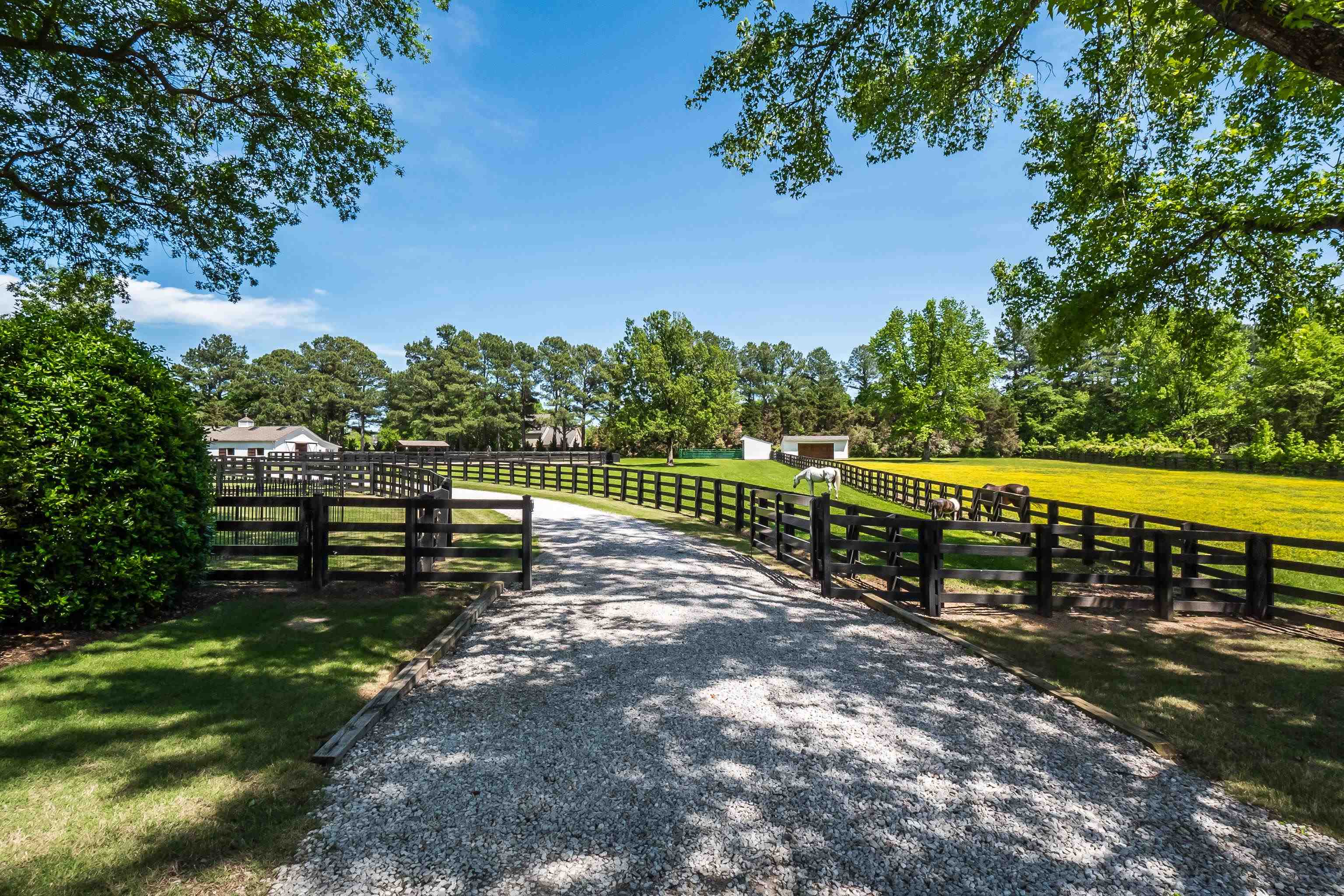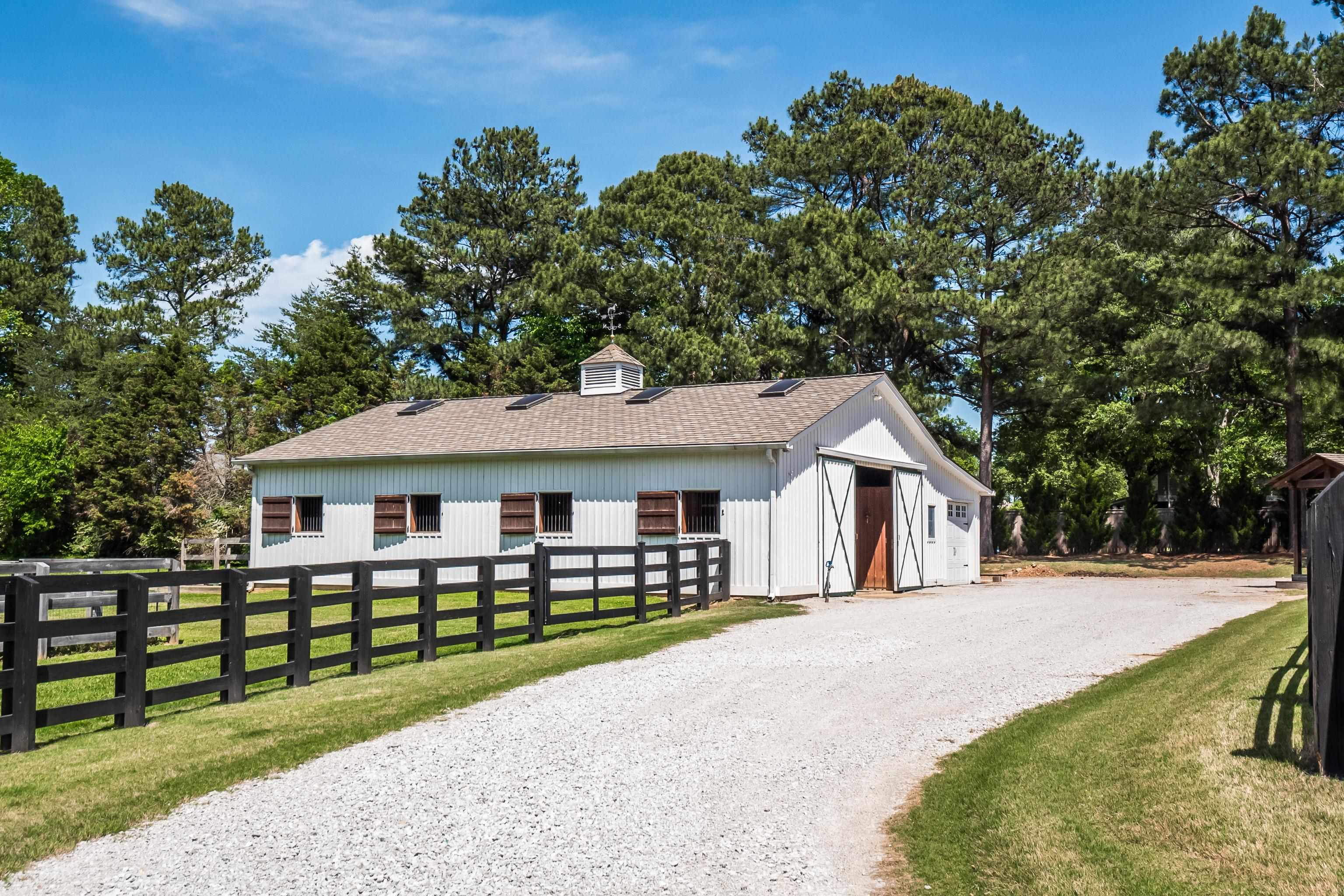 Expansive 10+/- ac gated equine estate incl pool w/waterfalls, 4-stall decked out barn, run-in sheds, riding arena, dog run, & cross fenced pastures. The home features reclaimed hardwd flrs dn, updated exquisite lighting, study, completely updated kitchen w/box beam ceil & high-end appls, updated BRs & adj BAs incl Primary Suite w/sitting area, FP & exercise rm, 28x21 playrm, updated guest apartment, stacked stone outdoor kitchen w/gas grill & green egg, garden shed w/raised beds, & lots more!