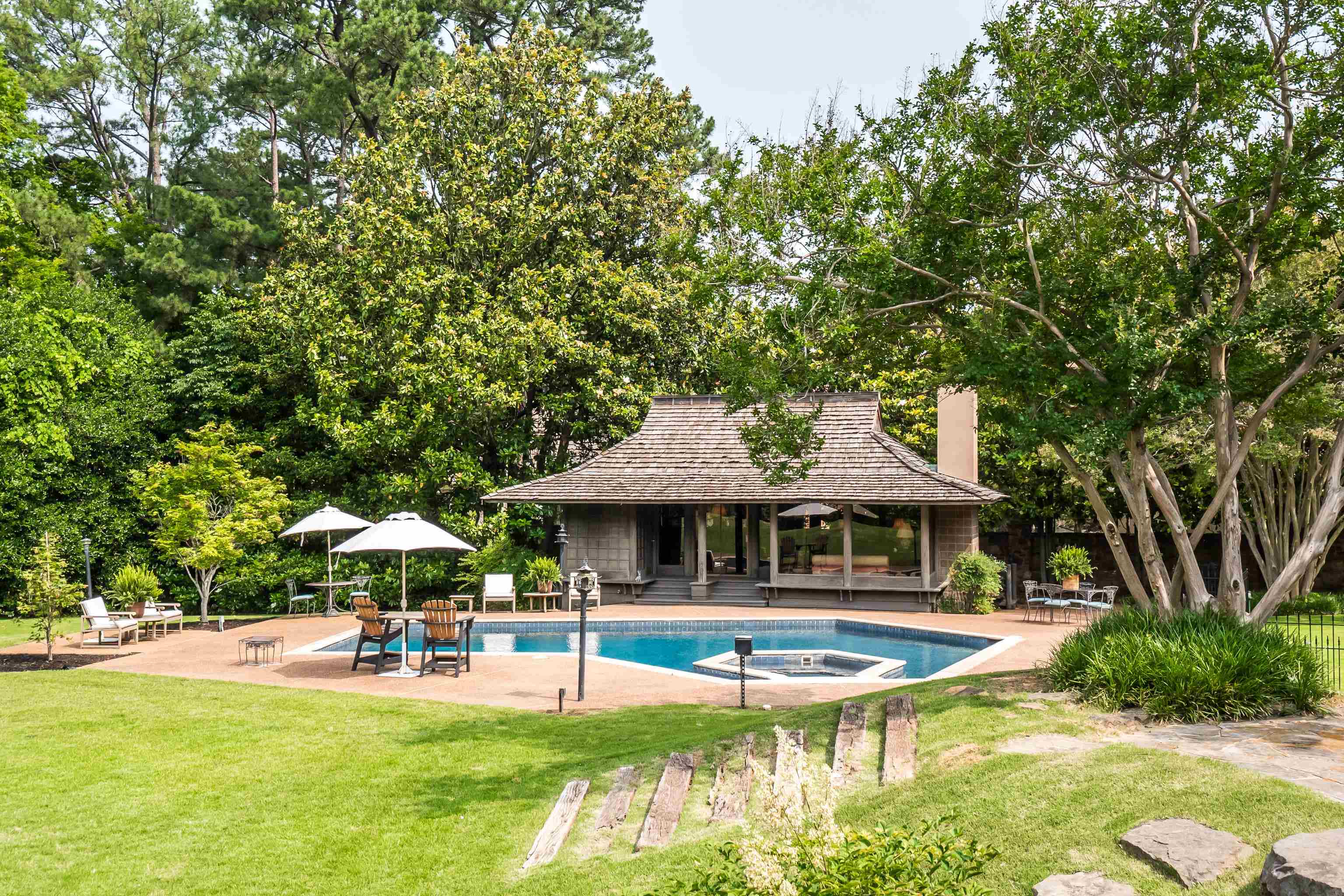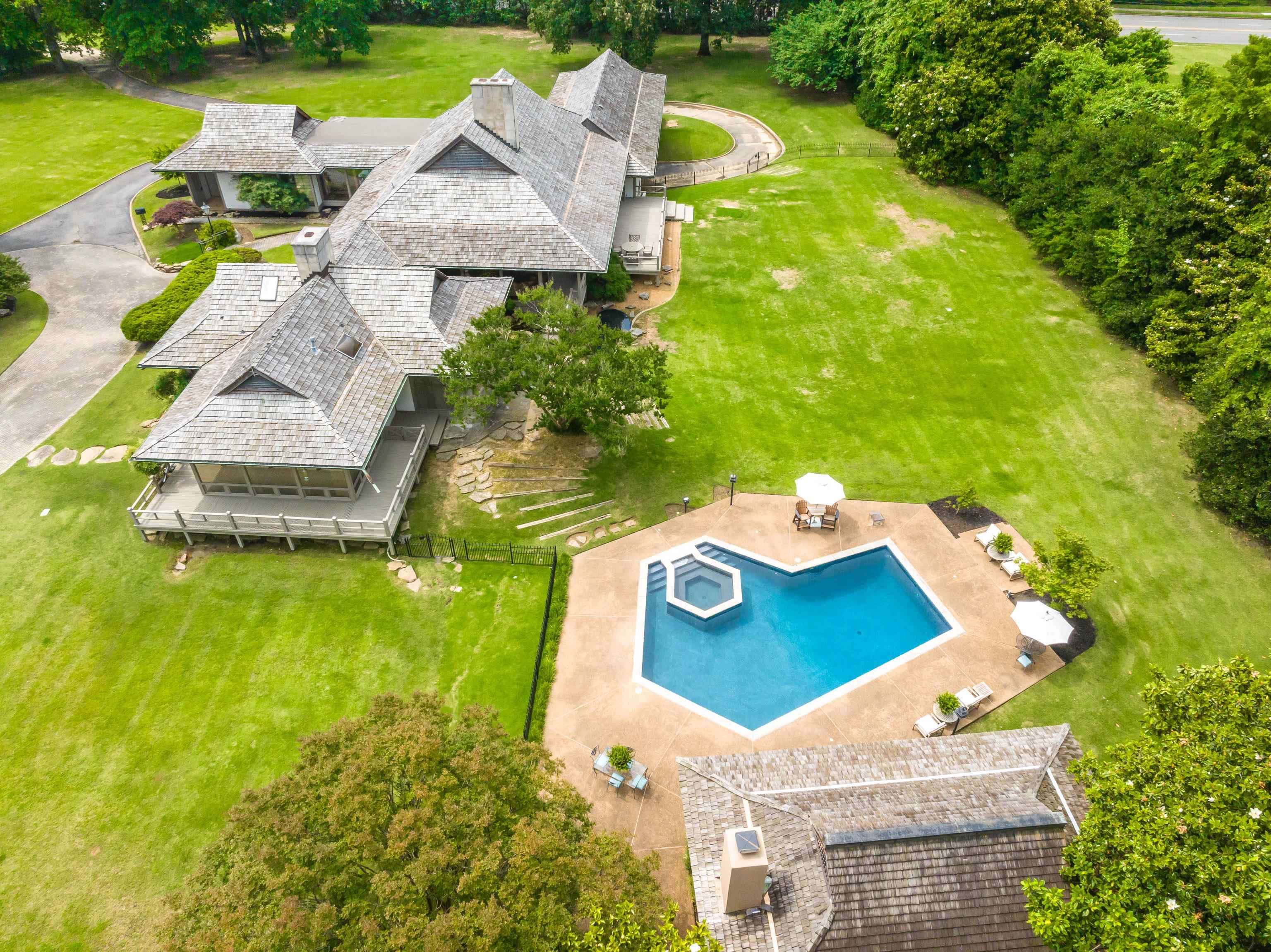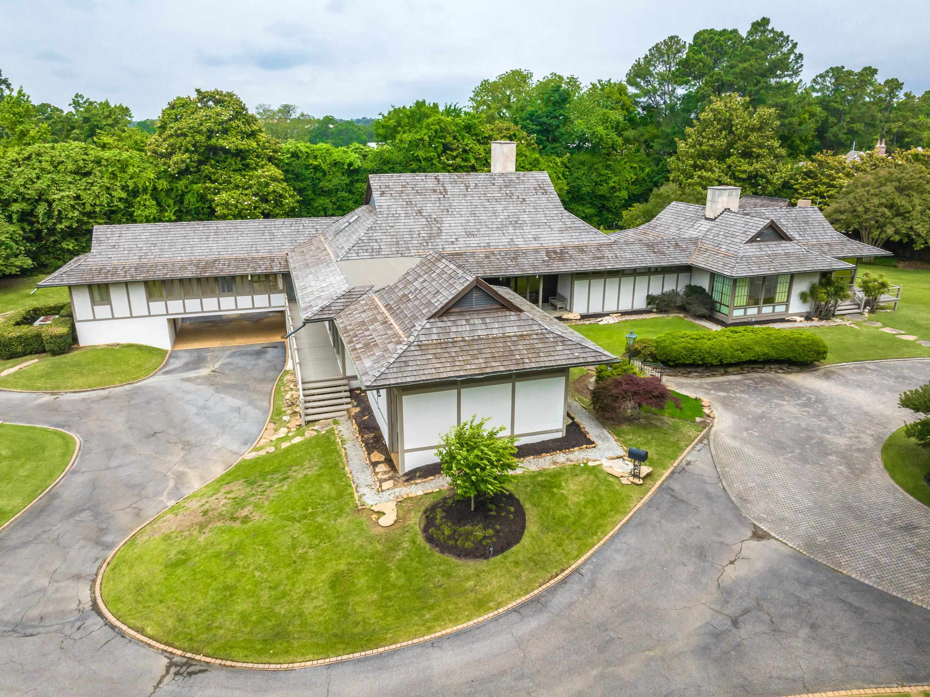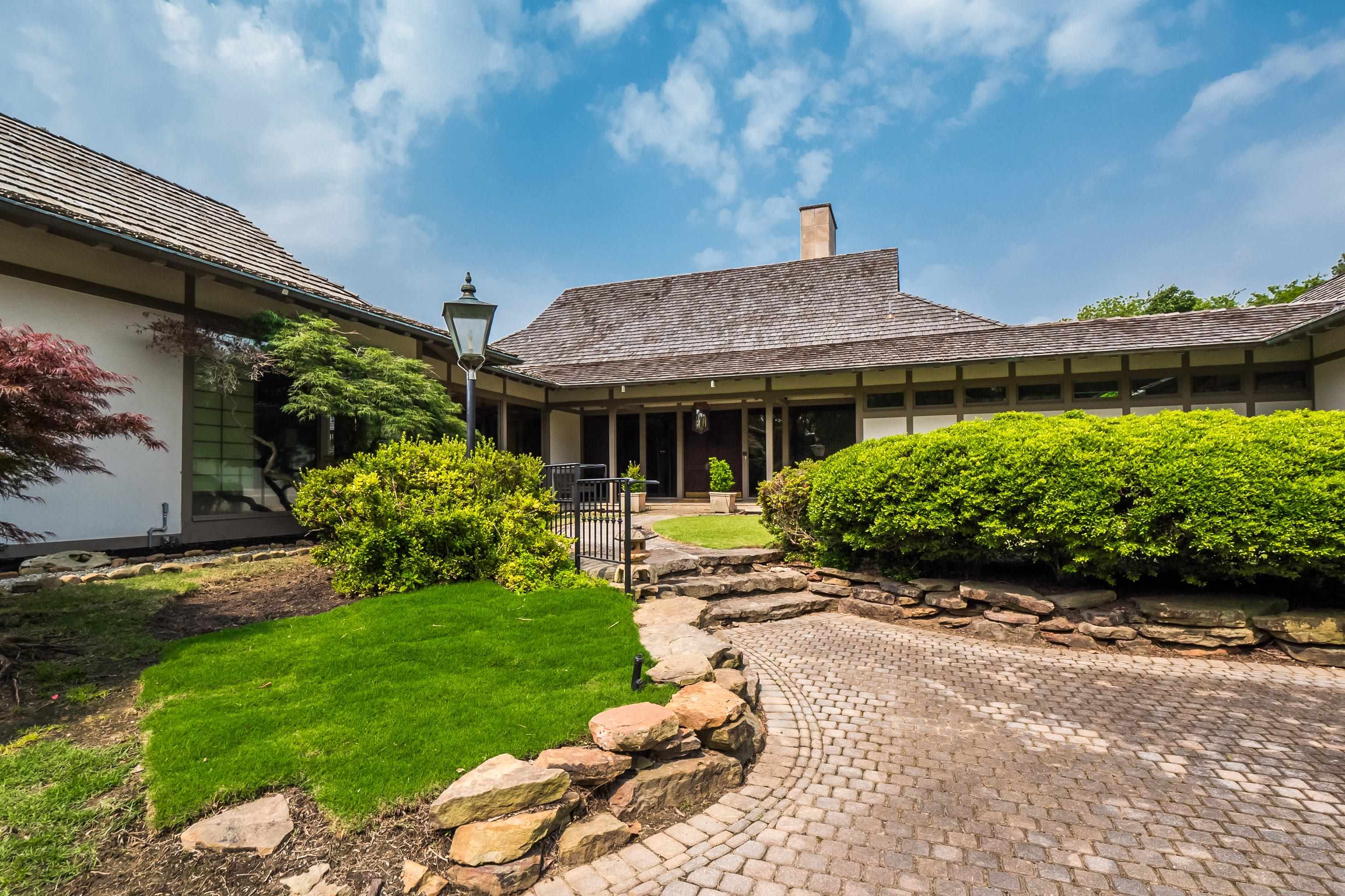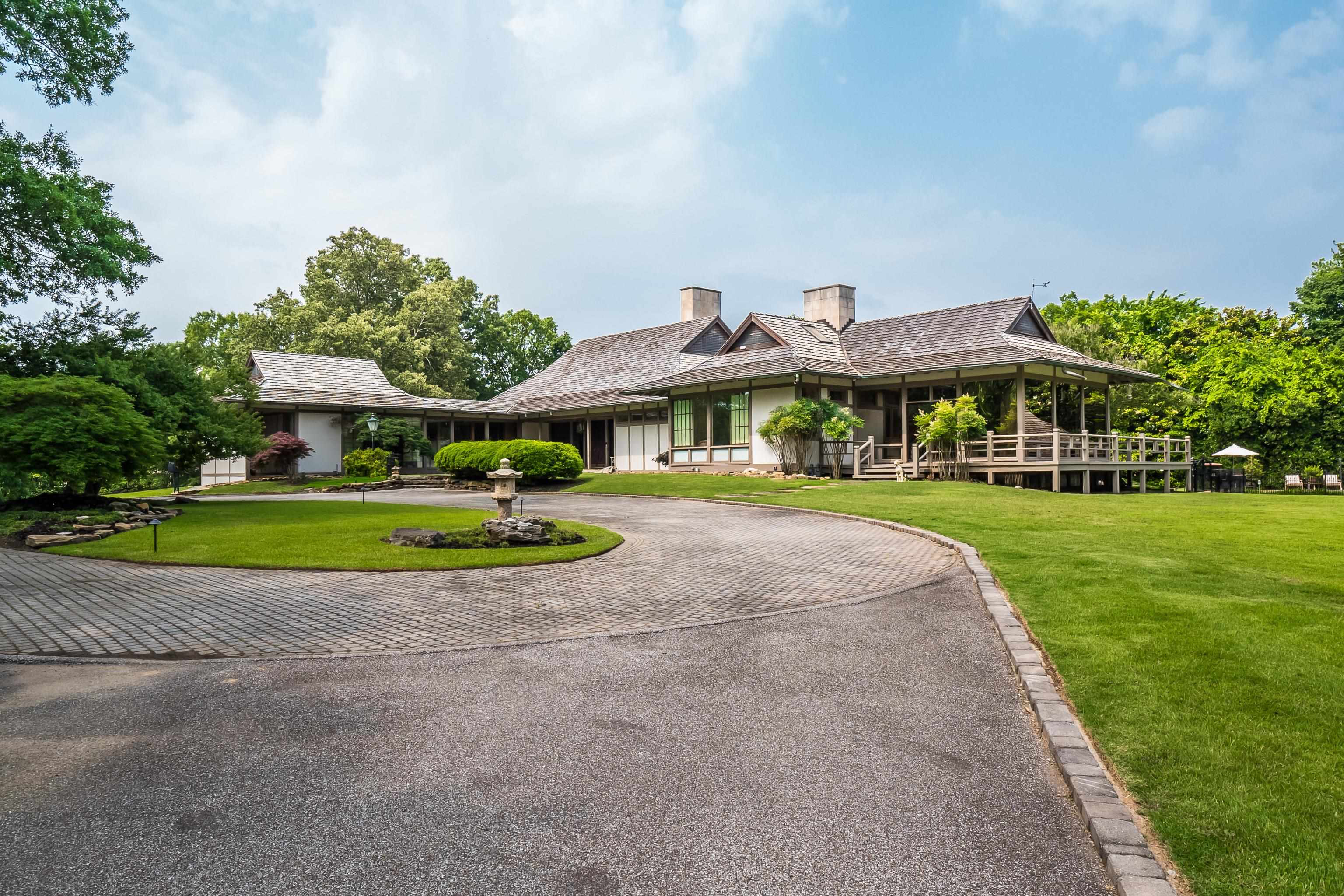 Complete privacy on this 4.3 AC property. Home offers vast living space on one floor and architecture inspired by the Katsura Imperial Villa in Kyoto, Japan. The house has 6 bedrooms, 6 en-suite bathrooms, three-car carport accessed via a loop driveway, a new cedar shake roof, Wide plank hardwood flooring, 5 fireplaces, Tea House for enjoyment by the pool, 2 Entrances off of Shady Grove. Seller has subdivided property into 2 parcels, Parcel 2- 2.3ac future development. Parcel 1.9ac house.