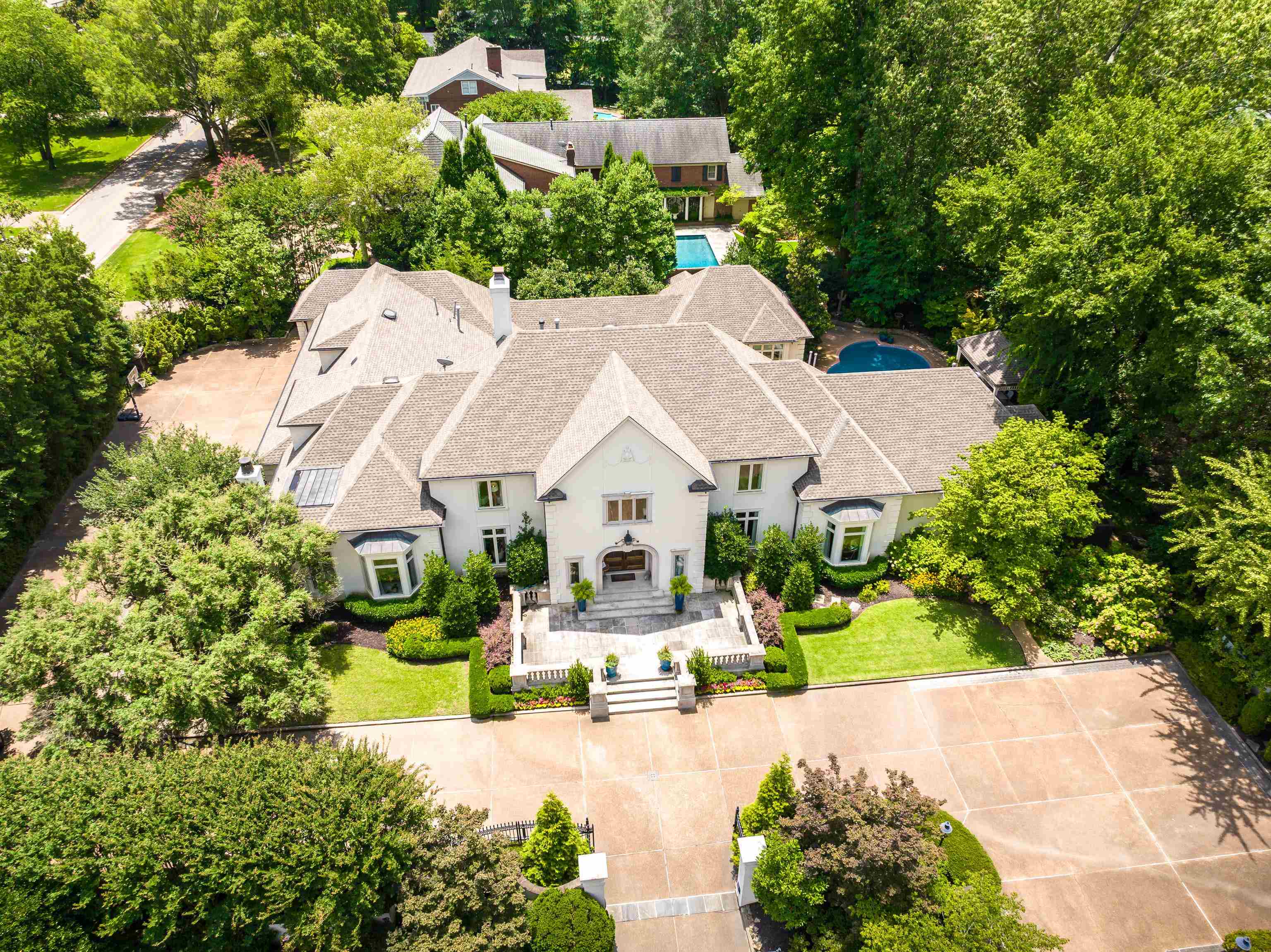 A rare opportunity! One of East Memphis’ most elite estates in the gated Gardens of River Oaks. This 5BR /4Full&3HalfBA, 8525 SF masterpiece blends timeless architecture with curated modern updates & privacy. Expansive living areas, luxe guest suite and spa-like primary retreat, every inch exudes sophistication. The chef’s kitchen features marble counters, custom cabinetry, scullery, gas cooking, double ovens, & built-in bev bar. A designer lounge area & entertainment bar, formal dining rm, upstairs game room, private gym, & large bonus room make entertaining effortless. Outdoor oasis with resort-style saltwater pool/spa, lush grounds, & architectural lighting. Whole-home automation (2023), surround sound, 5-car garage. Impeccable finishes throughout. For those who seek beauty, privacy, and presence—this estate truly has it all.