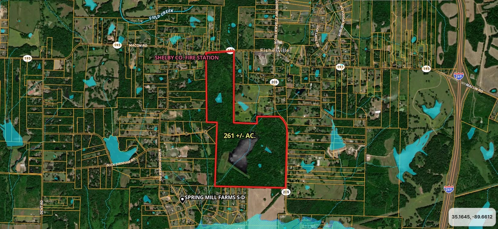 261 Fisherville — whether you’re seeking a large private estate site with a picturesque lakefront setting or envisioning multiple estate lots designed around a central water feature. The land is versatile, productive, and beautiful, with ample room for custom homesites, recreation, and investment growth. Located in desirable Fisherville, TN, this property offers rural tranquility with quick access to Collierville, Memphis, and surrounding communities. Property Highlights Size & Land Type: 261+/- acres of gently rolling land with a mix of open ground, woods, and water features Water Features: Stunning 20-acre lake plus two additional small ponds Development Potential: Structured for excellent estate lot development or ideal as a private estate Floodplain: None Recreational Use: Hunting and fishing opportunities right out your back door Frontage: Approx. 3,000 ft on Collierville-Arlington Rd and 1,200 ft on Macon Rd Utilities: Water main, electric and natural gas at the road.