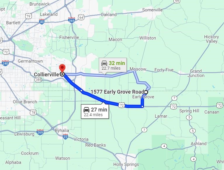 Clear Creek Farm is an exceptional recreational tract with beautiful potential homesites overlooking Clear Creek bottom. This one of a kind property consists of 405+/- acres in Fayette County, TN and 185 +/- acres in Marshall County, MS which allows you to take advantage of TN and MS hunting seasons. This tract features select cut timber, extensive interior and perimeter trail system, over 3,000' of road frontage, and tremendous deer and turkey hunting opportunities as well as duck hunting opportunities along year-round Clear Creek. Great location! ~20 minutes to I-269 in Collierville, TN, ~27 minutes to Collierville, TN, ~49 minutes to Memphis International Airport, and ~60 minutes to Oxford, MS.