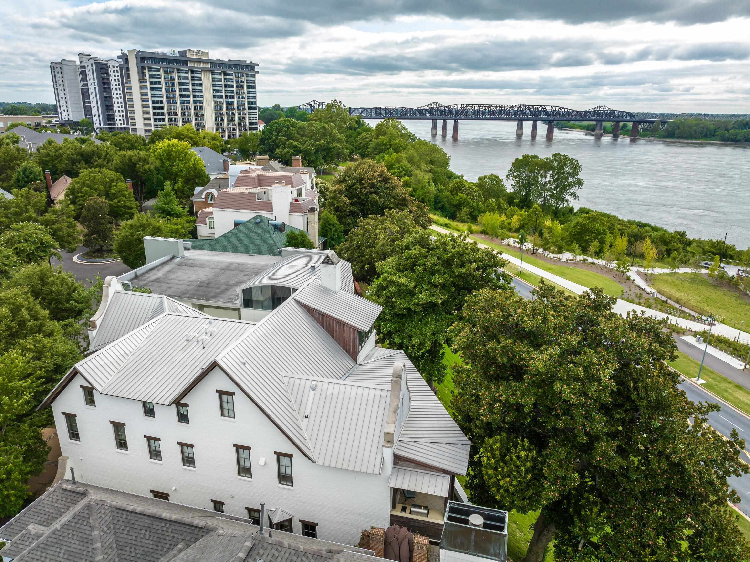 Prepare to be mesmerized by this stunning riverfront masterpiece in the prestigious South Bluffs community, designed by Looney Ricks Kiss and expertly built by Tom Archer of Archer Custom Builders. Offering arguably the most breathtaking views of the Mighty Mississippi, this residence showcases unparalleled quality and thoughtful design. Enjoy panoramic river vistas from all three floors, coupled with the security of seismic protection technology. The home features four luxurious en suite bedrooms, a chef's dream kitchen with a scullery, and beautiful reclaimed wide plank floors throughout spaces with soaring ceilings. The breathtaking staircase is a feast for the eyes Two gorgeous wrap-around porches - one with built-in gas grill, and three private courtyards invite exceptional indoor-outdoor living. An elevator provides ease of access. Located in one of the Memphis region's most convenient gated locations, this is a rare opportunity to own a truly exceptional riverfront estate.