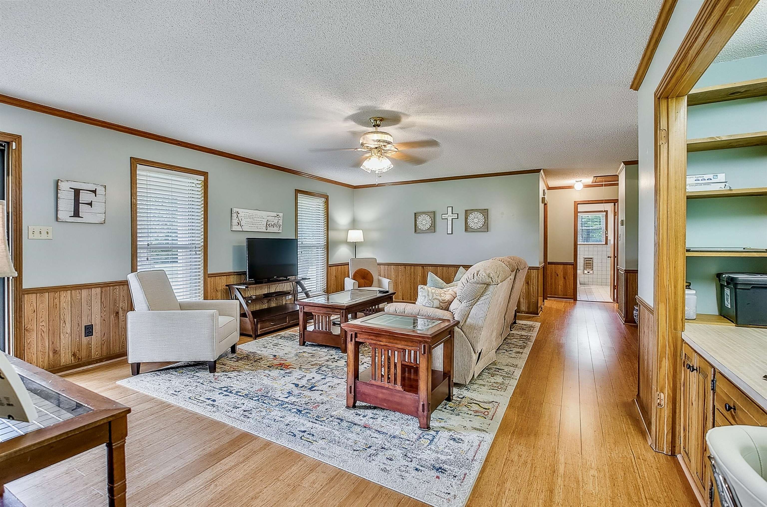 Prior Contract fell through @ Closing~NO FAULT TO SELLER~NOW W/NEW ROOF (w/transferable warranty) & COMPLETED REPAIRS READY FOR BUYER! Nestled on 5 picturesque acres w/serene pond, dock, workshop, tractor shed/Run-in this charming mostly updated 3BR/2BA home offers over 2,000 square feet of comfortable living space in a desirable split-bedroom layout and heated & cooled w/central HVAC + gas furnace converted garage space. Covered carport & extra parking pad. Enjoy a spacious living room, hardwood floors, custom office nook w/built-in desk & drawer space perfect for working from home. The cozy kitchen features a breakfast bar open to the dining area. Generously sized bedrooms w/fresh paint include custom wall-length built-ins, primary suite features a remodeled bathroom w/built-ins & walk-in shower. Step outside onto the spacious 11x16 wooden deck to take in the peaceful parklike views. Do not let this ONE get away! Updated photos of Exterior New Roof to Come!