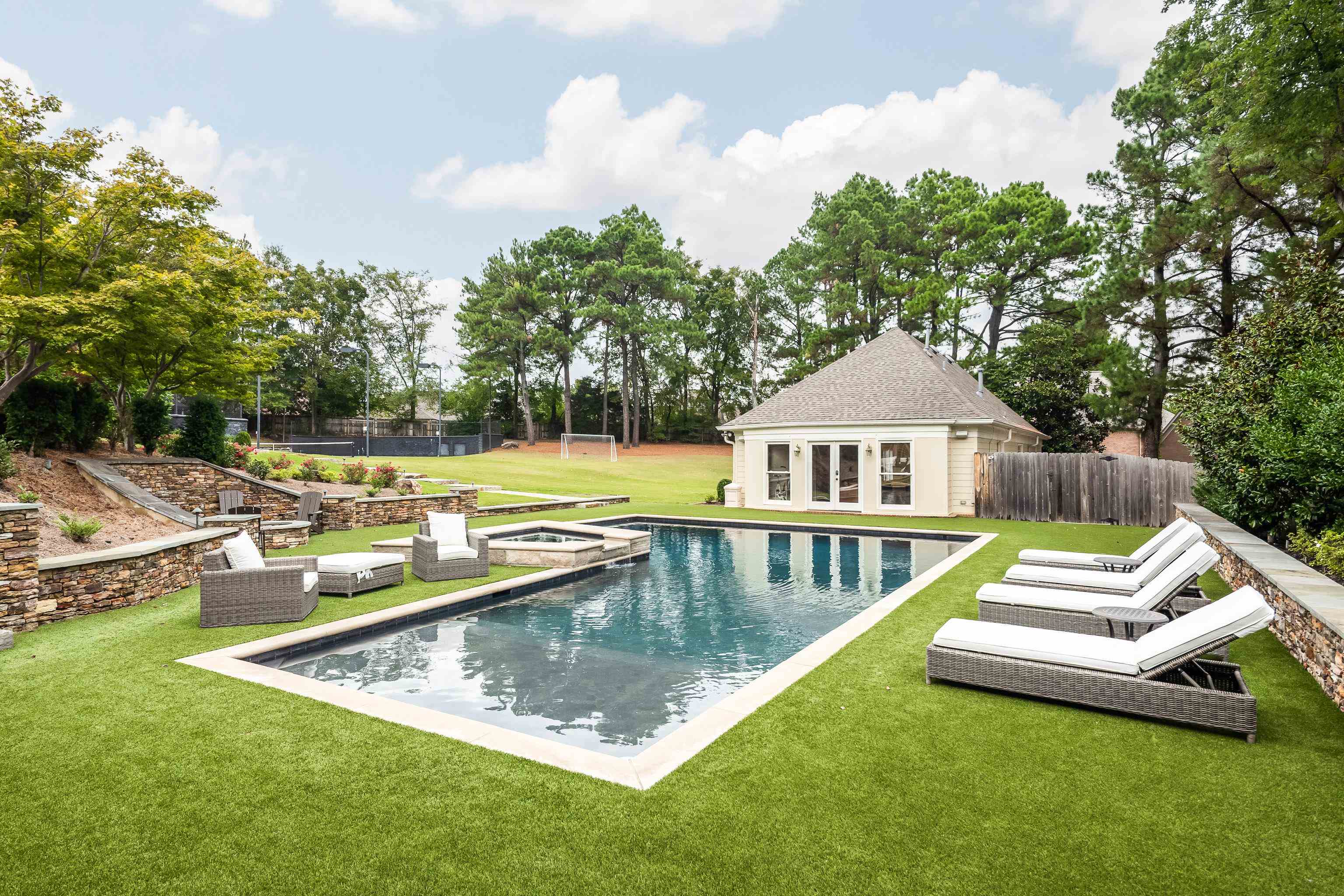 Get ready for family fun in every season! This enchanting 1.49-acre estate is the ultimate playground for kids of all ages—just a short walk from Lausanne School. With 8,000± sq. ft. of welcoming living space plus an 1,800± sq. ft. pool/guest house with gym, there’s room for everyone to spread out and enjoy. Summer days will be filled with splashing in the sparkling gunite pool, evening tennis matches on the regulation-size lit court, and family movie nights in the upstairs media room with wet bar. The gourmet kitchen—complete with SubZero refrigeration, double Thermador ovens, and granite counters—makes family meals a joy, while the adjoining keeping room with fireplace invites cozy nights by the fire. Two main-level primary suites offer flexibility for newborns, parents, grandparents, or guests. Surrounded by beautiful acreage, yet close to shopping, dining, medical centers, and the Greenline, this estate is more than a house—it’s where fun, laughter, and memories are made every day.