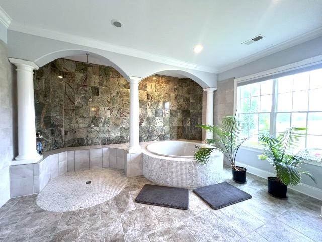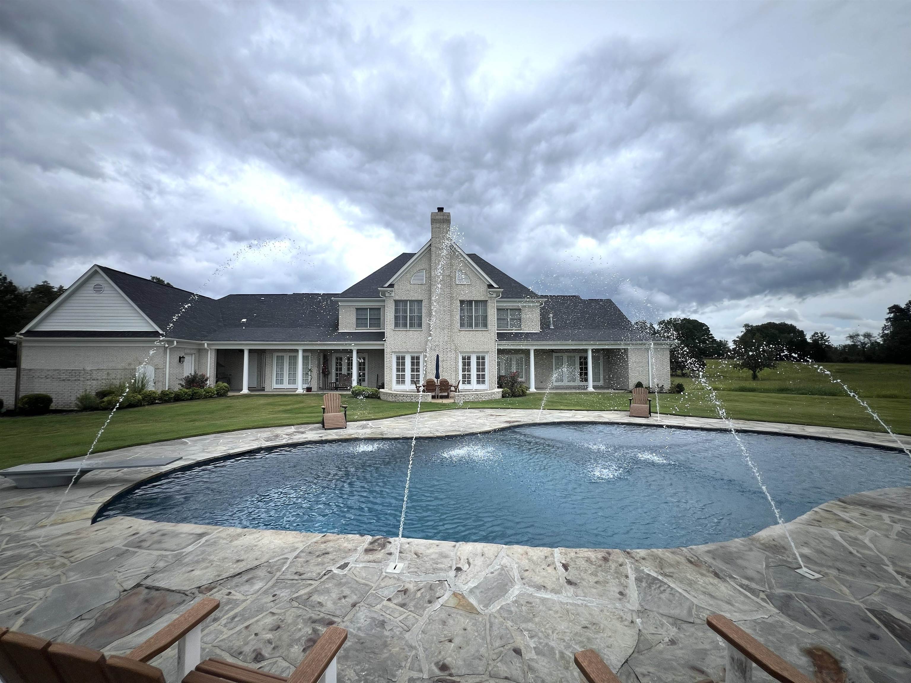 52 Acre Estate boasting a luxurious home with features including over 8400 sq. ft., a 3 story elevator, 5 bedrooms (4 full suites), 5 full baths, 2 half baths, a bold custom oak study, a media room, a game room, a spiral staircase, a 21' x 30' den with a 20' stone fireplace overlooking the in-ground saltwater pool with an outdoor living space. The home also includes a finished basement, an exquisite custom kitchen, a generator, three geothermal water heaters, two geothermal HVAC systems, and an exterior gas grill with a vent-a-hood. The property is home to a large stocked lake, a pond, a 3-stall horse stable, and a custom barndominium.