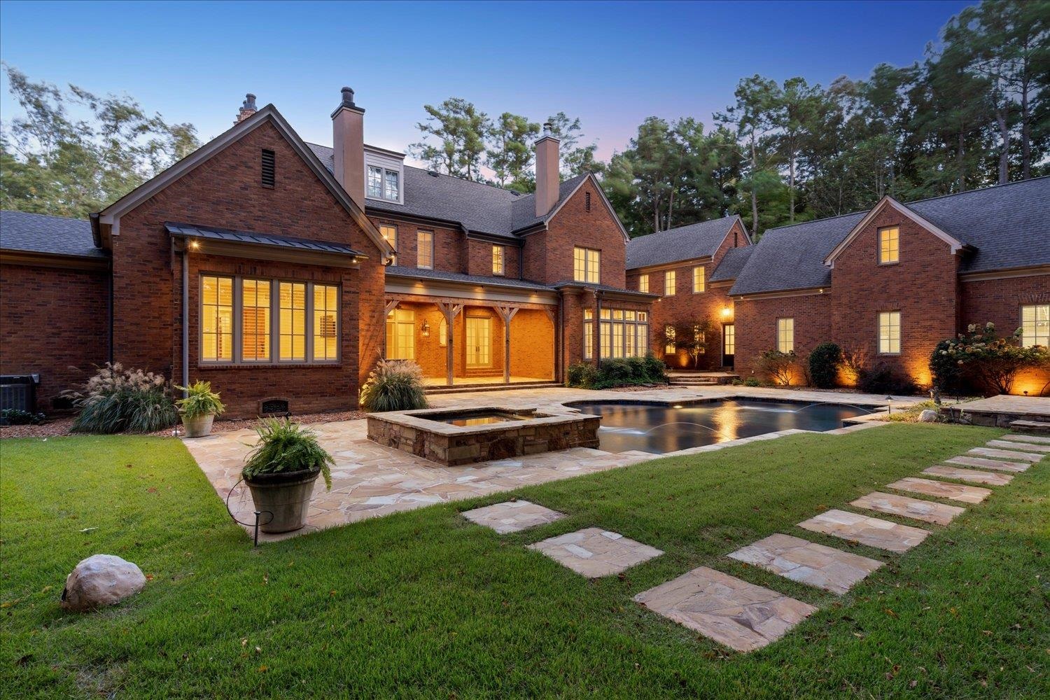 Stunning English Grand Manor in gated Preserves of Notting Hill, Eads’ most prestigious community! Designed by Carson Looney, this custom estate blends classic elegance with rustic charm—exposed beams, intricate millwork, hardwood & stone floors. Spacious open rooms, soaring ceilings, grand fireplaces, and a farm-style kitchen ideal for entertaining. Features include wine cellar, tasting room, domed library, arched porte cochere, and open-air motor court. Set on 4 private acres with manicured lawns, mature trees, pool & spa. Luxury, privacy, and timeless design—move-in ready!
